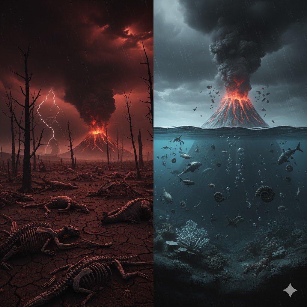 - Hoạt động núi lửa Siberian Traps: Núi lửa phun trào dữ dội giải phóng một lượng lớn khí nhà kính và các chất độc hại vào khí quyển, gây ra biến đổi khí hậu nghiêm trọng.