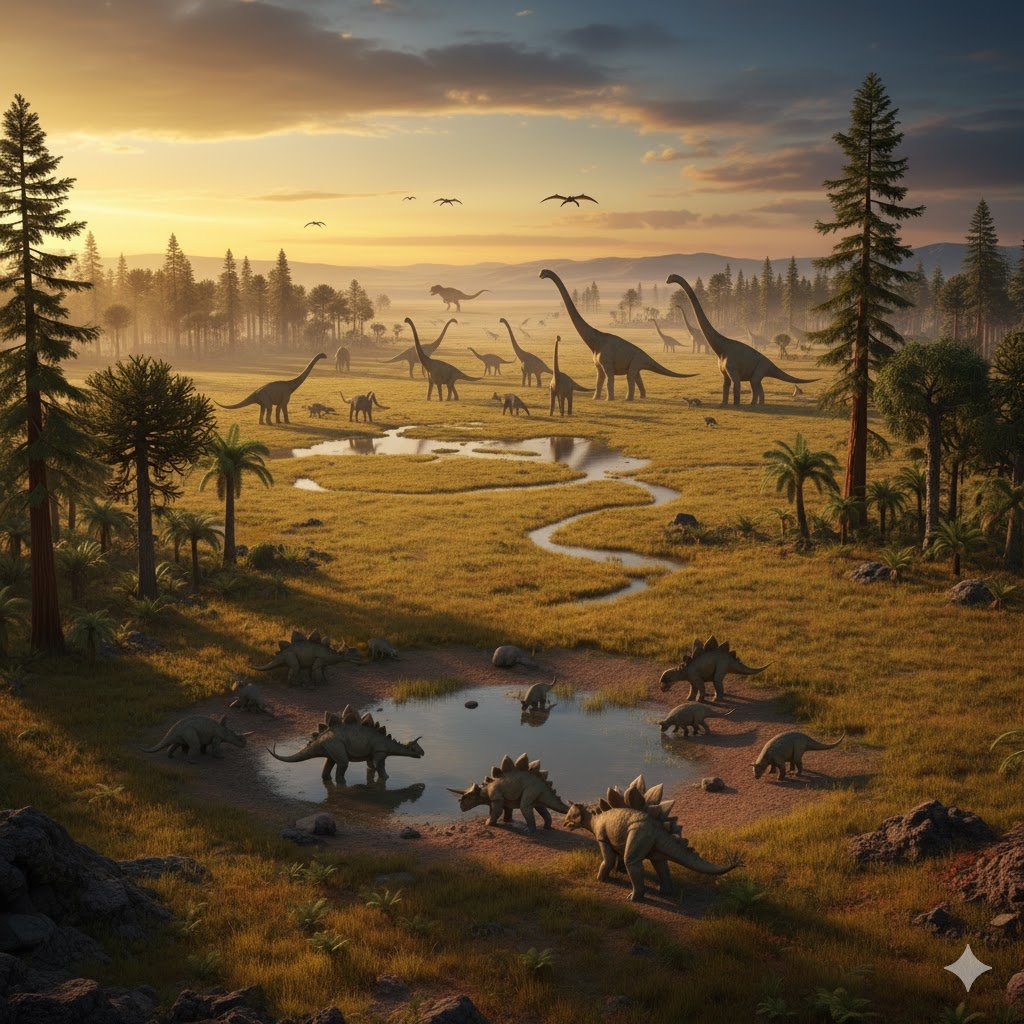 Kỷ Jura chứng kiến sự phát triển mạnh mẽ của khủng long. Chúng đa dạng hóa về kích thước, hình dáng và chế độ ăn. Sự tiến hóa của các đặc điểm như lông vũ và khả năng bay lượn cũng bắt đầu xuất hiện ở một số nhóm khủng long trong kỷ này, đặt nền móng cho sự xuất hiện của chim. Archaeopteryx, được tìm thấy trong Hệ tầng Solnhofen, là một ví dụ điển hình cho sự chuyển tiếp tiến hóa này.